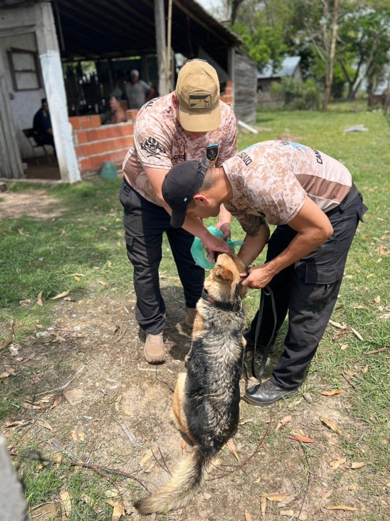 Simultáneamente, personal de la Comisaría de San Miguel, bajo la dirección del Comisario Dardo Gabriel Romero, llevó adelante un extenso rastrillaje junto a la División Canes de Corrientes Capital, a cargo del Auxiliar Cristian Canteros, quienes arribaron en el móvil C-423. También participó el Jefe de Zona, Comisario Mayor Enrique Lacuadra, en el móvil C-771, acompañado por el cabo Escalante Rodríguez.