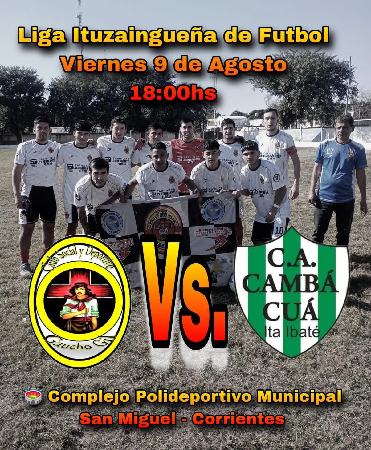 Por la Liga Ituzaingueña de Futbol: los equipos de esta localidad de San Miguel; Sol de América (San Miguel) y Gaucho Gil (Caimán), se enfrentan a los combinados de Cambá Cuá y Rana estos últimos de la vecina localidad de Ita Ibaté, por la 5ta fecha del torneo. El cual es comandado por el Club Rana con 7 ptos, (diferencia de goles puntero), Club Cambä Cuá 7 ptos, Sol de América 4 ptos, Gaucho Gil 4 ptos. Los equipos de San Miguel deberán ganar los dos encuentros que les quedan por jugar para seguir con chances de pasar a la siguiente ronda.
