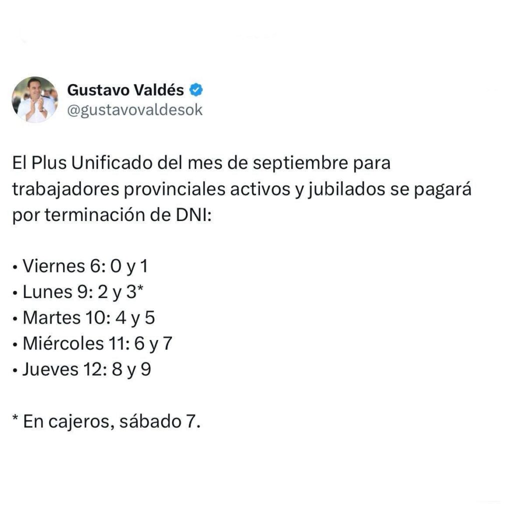 CORRIENTES: Plus unificado del mes de septiembre lo anuncio el Gobernador en sus redes sociales