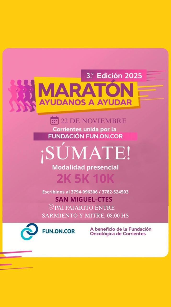 La localidad de San Miguel se prepara con gran entusiasmo para vivir, el próximo 22 de noviembre, la Tercera Edición de la Maratón “Ayudanos a Ayudar”, un evento solidario cuya recaudación será destinada íntegramente a la Fundación Oncológica de Corrientes. Esta propuesta combina deporte, naturaleza y un fuerte compromiso comunitario que año tras año convoca a más participantes.