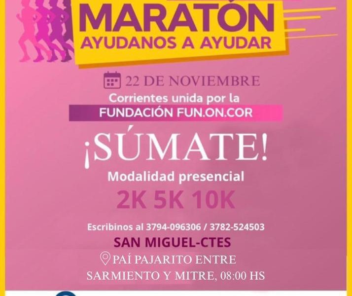 SAN MIGUEL: EL 22 DE NOVIEMBRE SE CORRE LA TERCERA EDICIÓN DE LA MARATÓN “AYUDANOS A AYUDAR”, A BENEFICIO DE LA FUNDACIÓN ONCOLÓGICA DE CORRIENTES